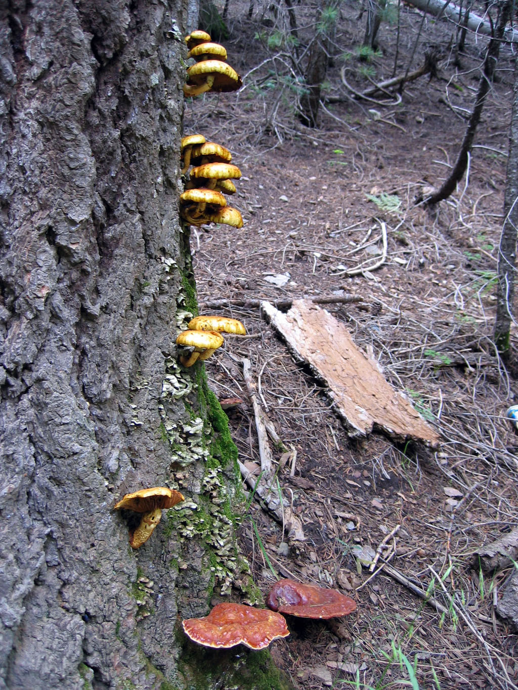 Three macrofungi working on this tree...